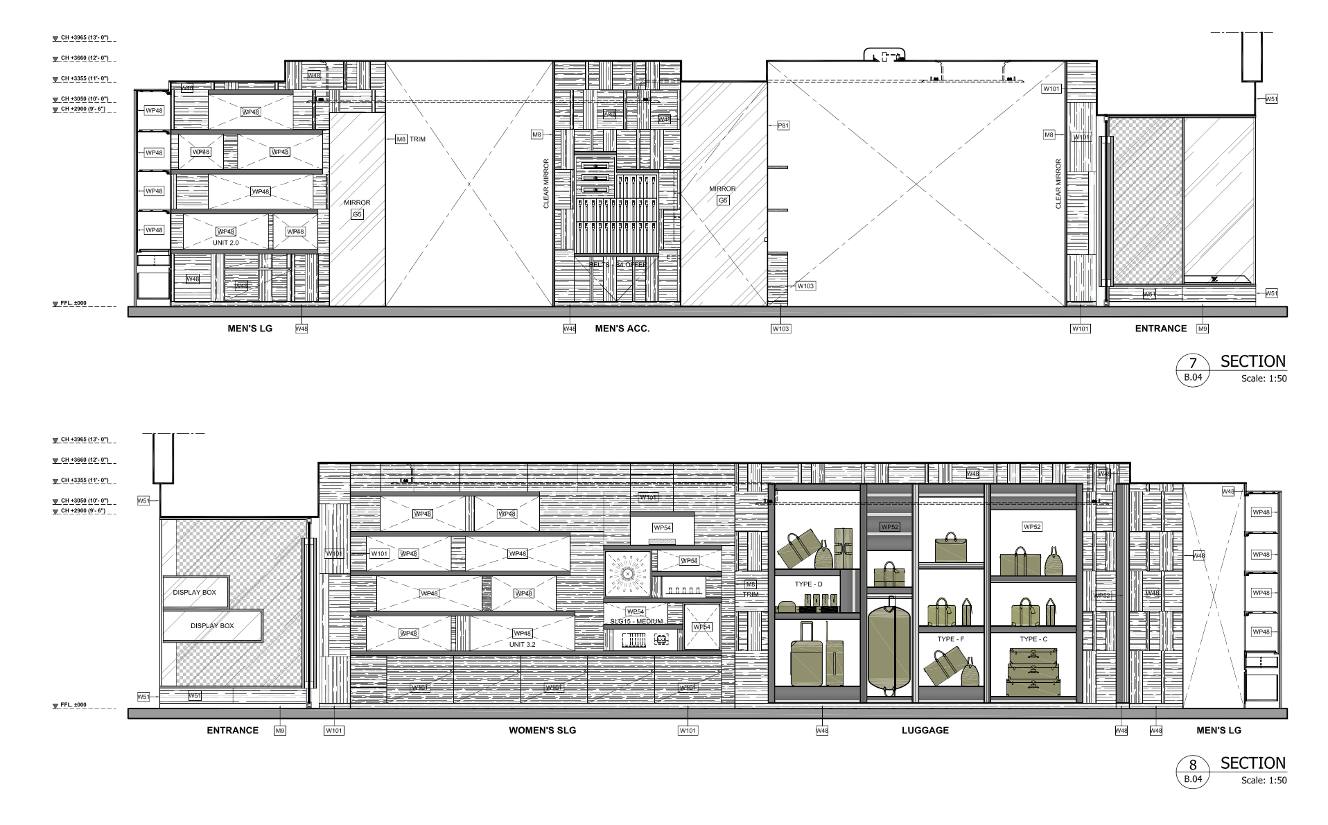 . Louis Vuitton Malletier (2 rue du Pont Neuf ), travail sur la conception des magasins dans l’absolu, ainsi que sur les aménagements spécifiques à chaque projets.